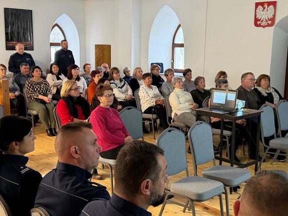 Wczoraj włoszczowscy policjanci spotkali się z mieszkańcami gminy Kluczewsko. Podczas zorganizowanego spotkania omówione zostały aspekty związane ze stanem bezpieczeństwa powiatu włoszczowskiego, funkcjonowaniem Krajowej Mapy Zagrożeń Bezpieczeństwa, a także profilaktyką dotyczącą oszustw.