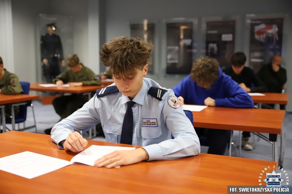 20 października na Sali Narad im. mjr Jana Piwnika „Ponurego” do zmagań zasiadło 26 uczestników. Wśród uczniów szkół średnich znalazło się 5 policjantów. Test składał się z 25 pytań zamkniętych oraz dwóch otwartych. Aby być w gronie najlepszych, należało wykazać się znajomością historii Policji Państwowej II RP, posiadać informacje o patronie świętokrzyskiej Policji oraz – co idealnie wpisuje się w obchodzoną rocznicę – znać historię kobiet w naszej formacji. Konkurs otworzył Zastępca Komendanta Wojewódzkiego Policji w Kielcach inspektor Jacek Cholewa. Zarząd Województwa Świętokrzyskiego reprezentowała Pani Anita Koniusz.