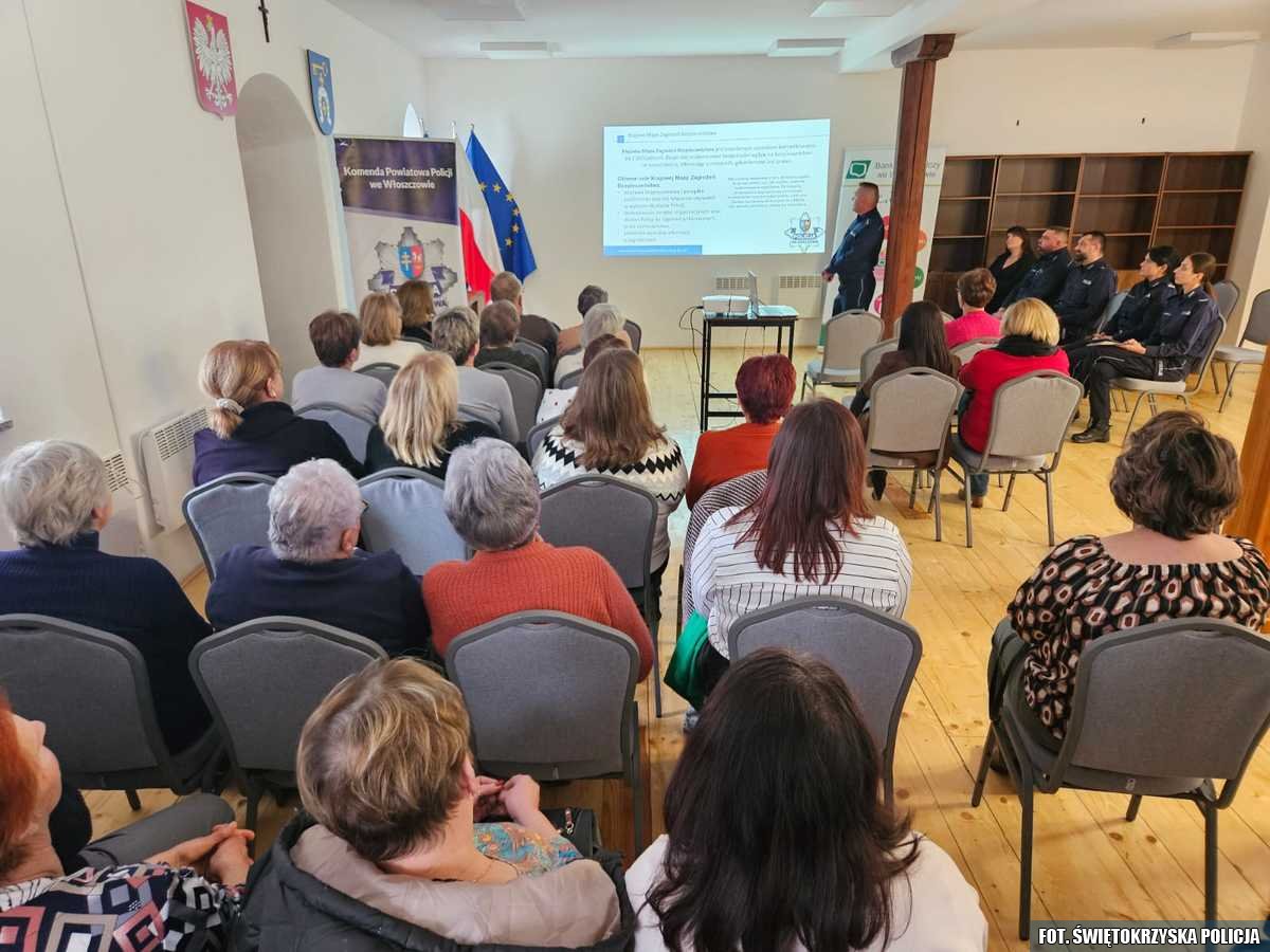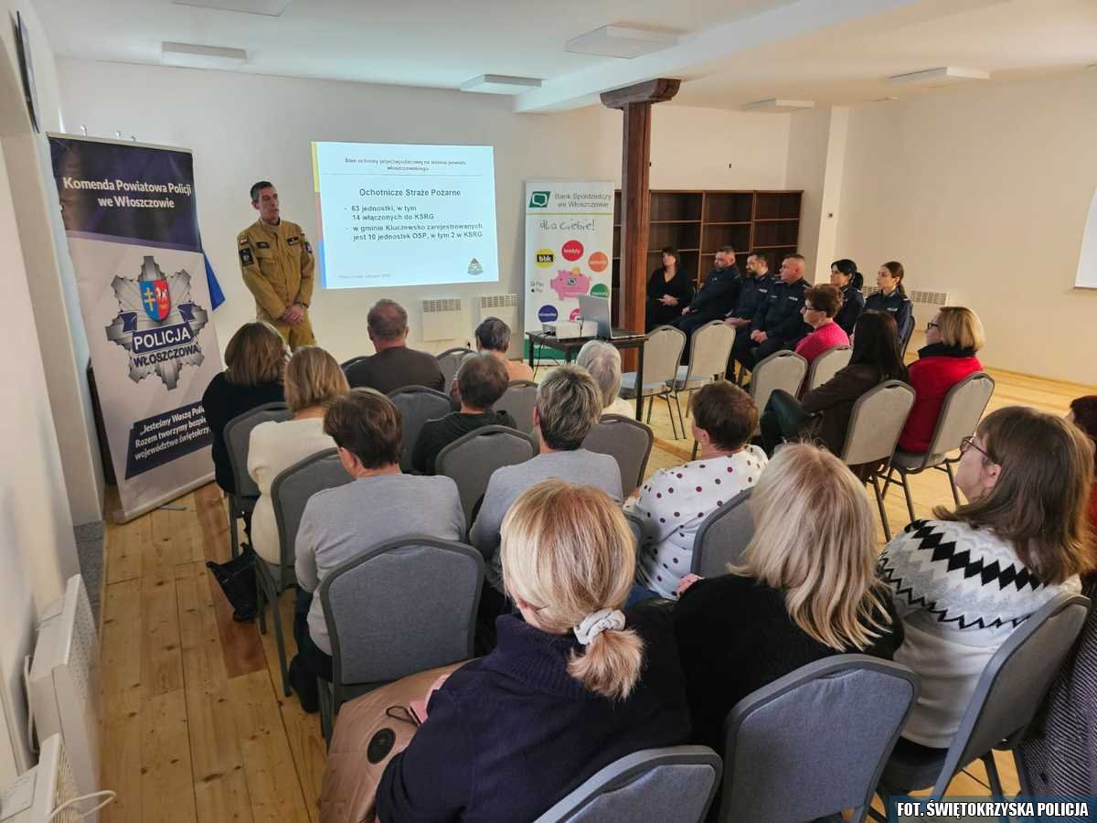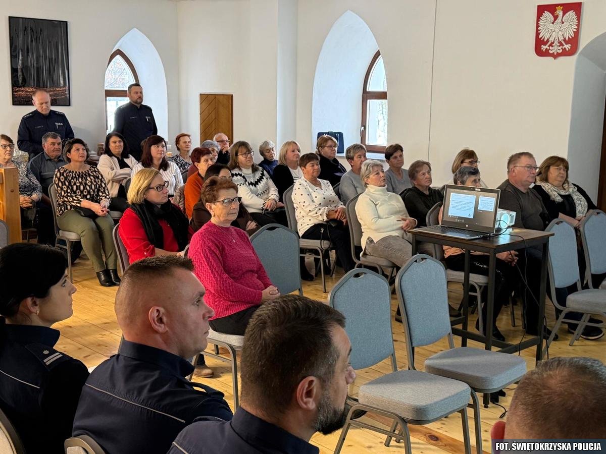 Wczoraj włoszczowscy policjanci spotkali się z mieszkańcami gminy Kluczewsko. Podczas zorganizowanego spotkania omówione zostały aspekty związane ze stanem bezpieczeństwa powiatu włoszczowskiego, funkcjonowaniem Krajowej Mapy Zagrożeń Bezpieczeństwa, a także profilaktyką dotyczącą oszustw.