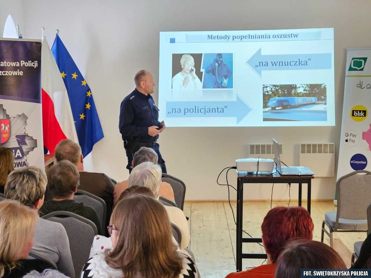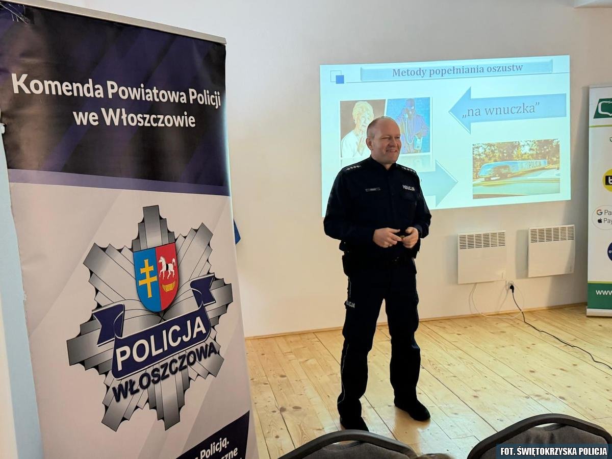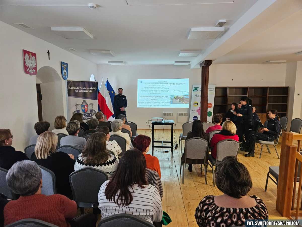 Wczoraj włoszczowscy policjanci spotkali się z mieszkańcami gminy Kluczewsko. Podczas zorganizowanego spotkania omówione zostały aspekty związane ze stanem bezpieczeństwa powiatu włoszczowskiego, funkcjonowaniem Krajowej Mapy Zagrożeń Bezpieczeństwa, a także profilaktyką dotyczącą oszustw.