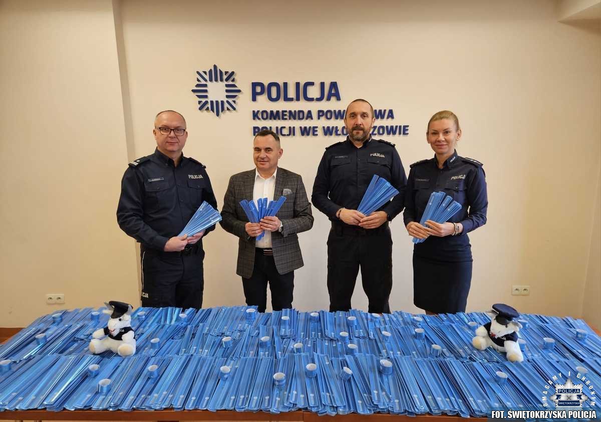 W trosce o bezpieczeństwo mieszkańców, dzisiaj we włoszczowskiej komendzie odbyło się spotkanie, na którym Burmistrz Gminy Włoszczowa Grzegorz Dziubek przekazał na ręce Komendanta Powiatowego Policji we Włoszczowie podinsp. Zbigniewa Popczyka 5000 elementów odblaskowych. Przekazane opaski w znacznym stopniu poprawią widoczność pieszych i tym samym przyczynią się do poprawy bezpieczeństwa na naszych drogach. Będą one wykorzystywane podczas spotkań edukacyjnych i akcji profilaktycznych prowadzonych przez włoszczowskich policjantów.