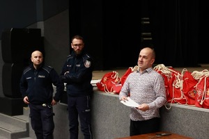 z wolontariuszami kwestującymi podczas Finału Wielkiej Orkiestry Świątecznej Pomocy. Podczas tego typu spotkań, mundurowi przypominają o zachowaniu bezpieczeństwa oraz o tym, jak należy się zachować w sytuacjach zagrożenia.